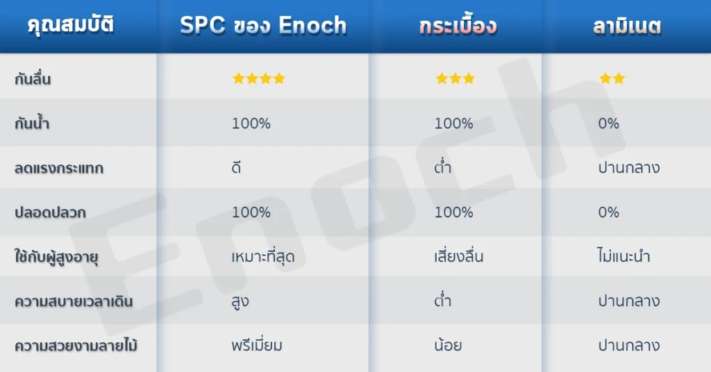 ตารางเปรียบเทียบ พื้น SPC สำหรับบ้านผู้สูงอายุ